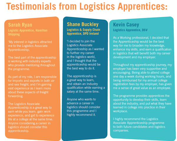Since its launch in 2018, over 511 apprentices have enrolled, with 160 registered companies offering placements across Ireland. These employers represent a wide range of sectors, including manufacturing, warehousing, distribution, shipping, and freight forwarding.