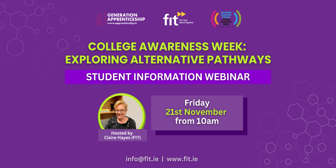 As part of College Awareness Week, FIT (Fastrack into Information Technology) and CAW (College Awareness Week) are hosting a free information webinar designed specifically for Guidance Counsellors and Senior Cycle teachers.