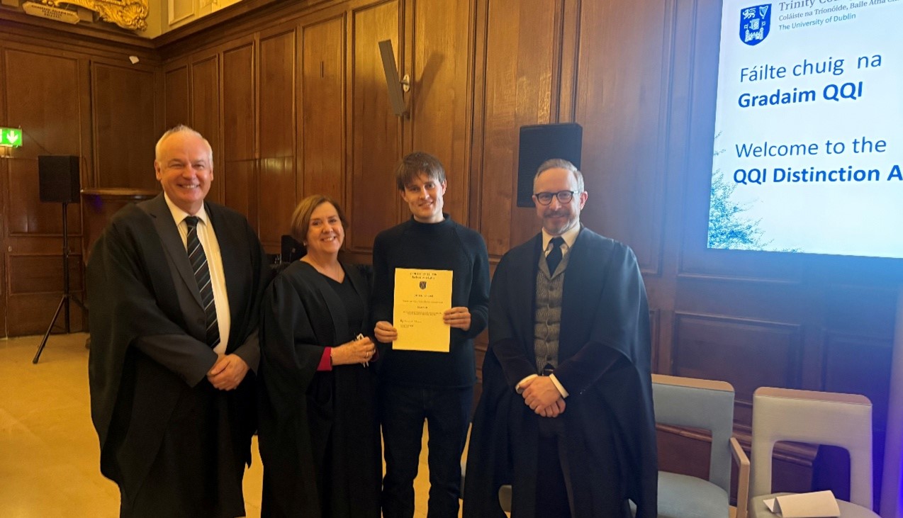 Former Moate Business College Student Cathal Tyrrell honoured at Trinity College QQI Distinction Awards