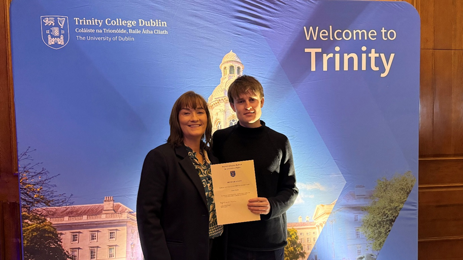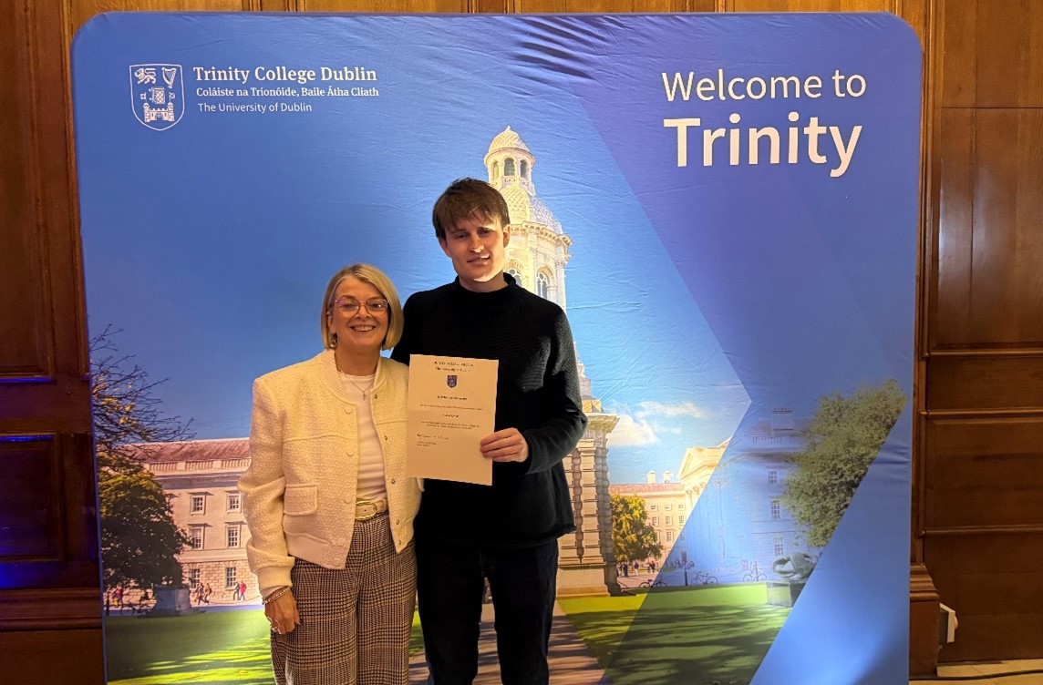 Cathal was one of 8 students outside of Dublin, Meath and Louth to receive the award for 2024. All awardees achieved 8 distinctions in their PLC/FET College examinations. He is currently in the second year of his course and is enjoying student life in Trinity.