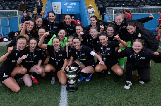 Maynooth University (MU) Senior Women’s Soccer team are celebrating after lifting the Kelly Cup at Athlone Town Stadium, securing an outstanding League and Cup double for the 2025/26 season, having already been crowned CUFL Premier Division champions earlier this season.
