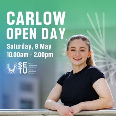 SETU are hosting a Spring Open Day on Saturday, 9 May at 10am – 2pm at the Carlow Campus. As the CAO Change of Mind facility will open on Tuesday 5 May, this is an ideal opportunity for your students to have their questions answered at this crucial time as they are preparing to make their final decisions.