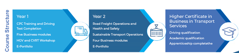The apprenticeship leads to a Higher Certificate (NFQ Level 6) in Business in Transport Services from ATU Sligo. You will also earn your C/CE driver licence.